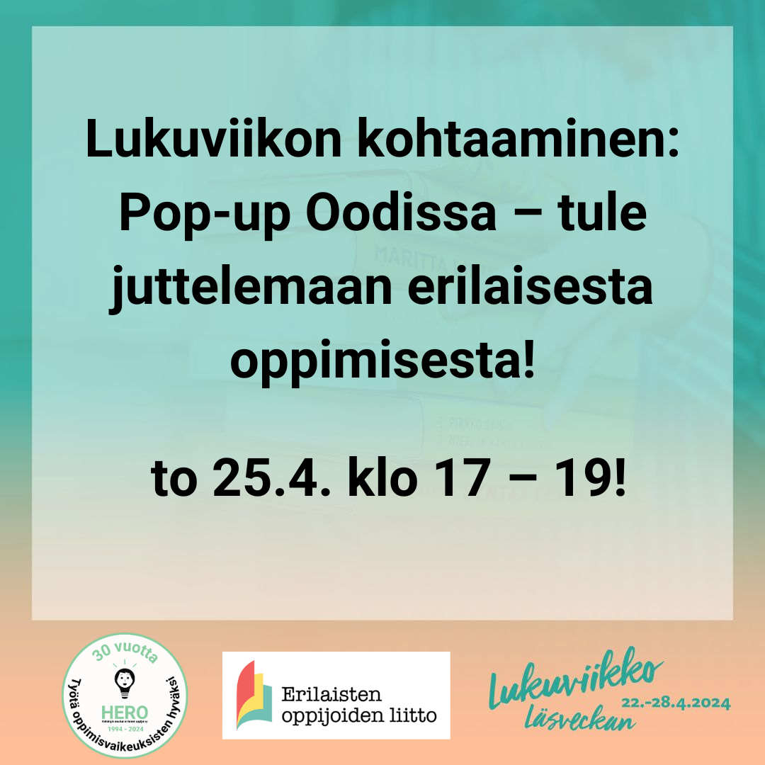 | • | To 25.4. HEROn ja EO-liiton Pop-Up Oodissa: Tule juttelemaan erilaisesta oppimisesta |