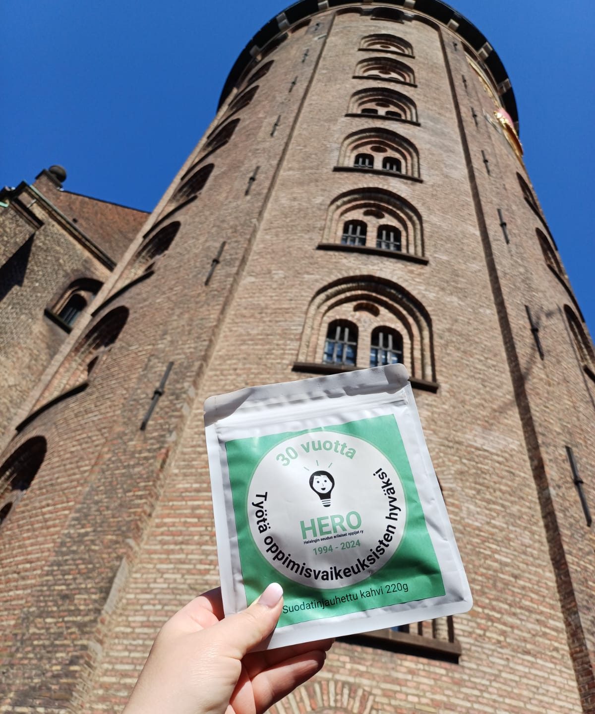 HEROn varainhankinnan uusi tuote HERO-kahvi on loistava kesätuliainen! Vink-vink! Alla olevassa kuvassa todiste. HERO-kahvi on löytänyt tiensä jo Kööpenhaminaan asti.