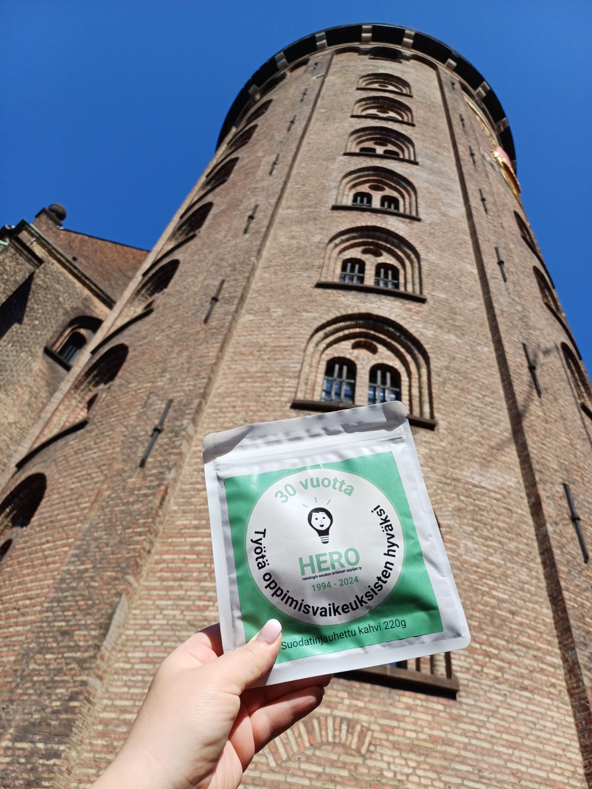 HEROn varainhankinnan uusi tuote HERO-kahvi on loistava kesätuliainen! Vink-vink! Alla olevassa kuvassa todiste. HERO-kahvi on löytänyt tiensä jo Kööpenhaminaan asti.